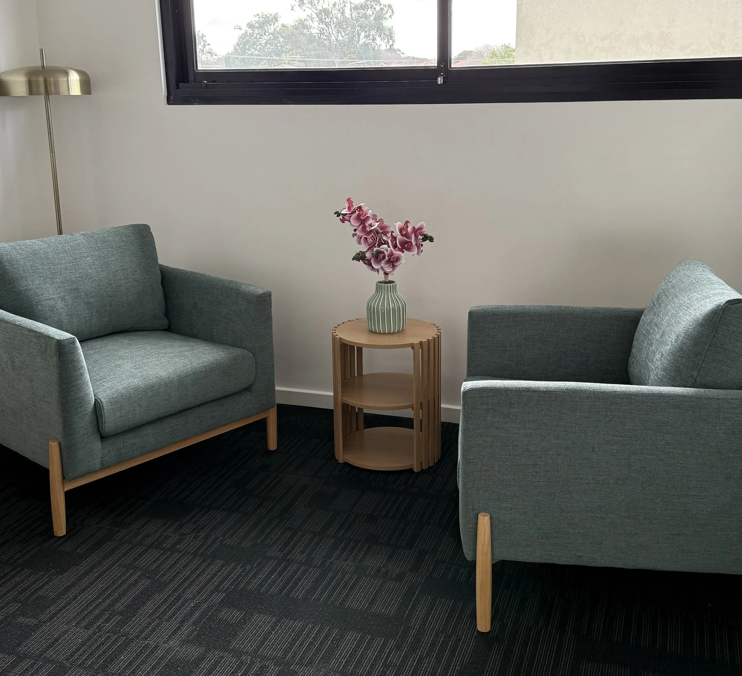I created Sit With Me Psychology to offer a space that’s warm, welcoming, and grounded in real human connection. There is nothing artificial or fake in my office, except the plant.